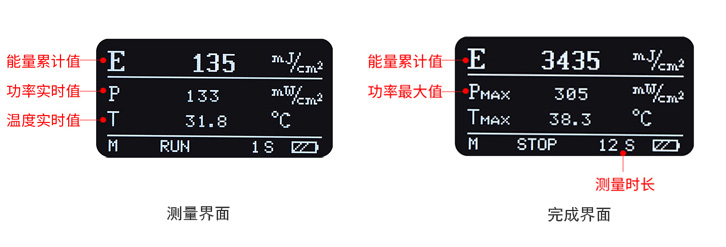 5.測量中可顯示實時功率值,測量完成后直接顯示能量累積值和功率最大值。
