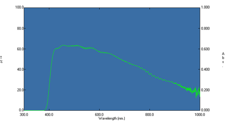 高品質的太陽膜,一般都盡量保證高的可見光透光率和高的紅外線阻隔率,但由于技術和性價比等原因限制,不可能做到理想化的可見光全透,紅外線全阻隔。下圖是一張太陽膜的真實光學透過率曲線。