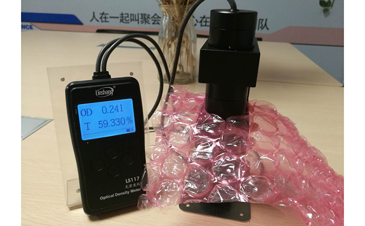 除了顏色,厚度是第二個影響透光率的因素。例如快遞袋,塑料管材的透光率就非常非常的低。我們可以在儀器上很明顯的看到,不同厚度的管材,透光率的差異非常大。值得注意的是,這種簡便式測量管材透光率的儀器,不是通用型的規則透射型透光率儀,必須要使用漫透射原理的透光率儀,這是因為漫透射透光率儀的接收端有可以搜集散射光的裝置。