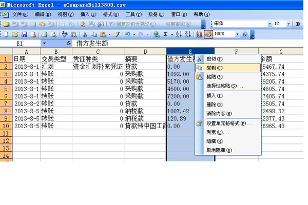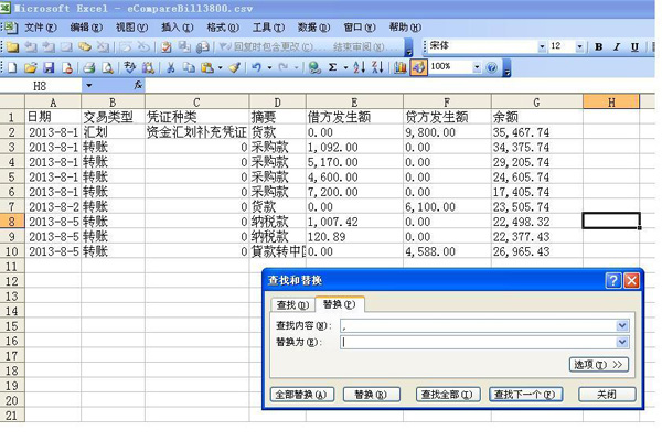 ? ? ?從銀行下載的交易清單,有*.CSV 格式,其中的金額數(shù)據(jù)為帶逗號的文本數(shù)據(jù),只能看,不能用excel進行累加等數(shù)值操作,不能進行數(shù)據(jù)計算,對于統(tǒng)計,非常麻煩。